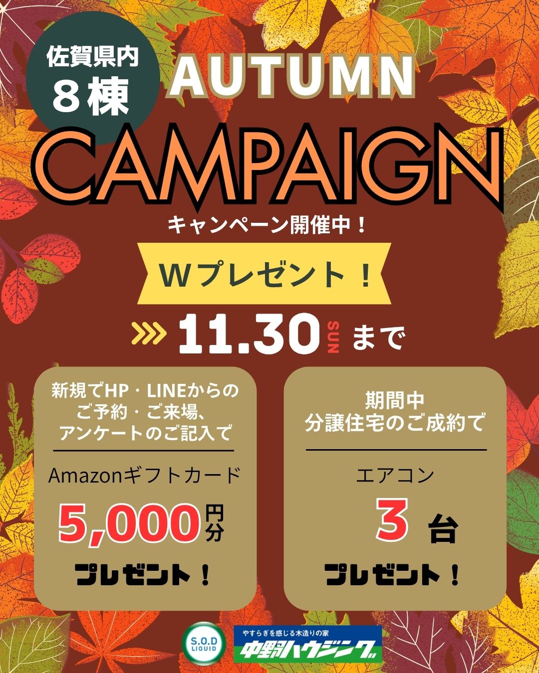 2025/10/02Blog佐賀県内8棟!オータムキャンペーン開催♪#制震装置 MIRAIE#お知らせ#S.O.Dリキッド#OPEN HOUSE