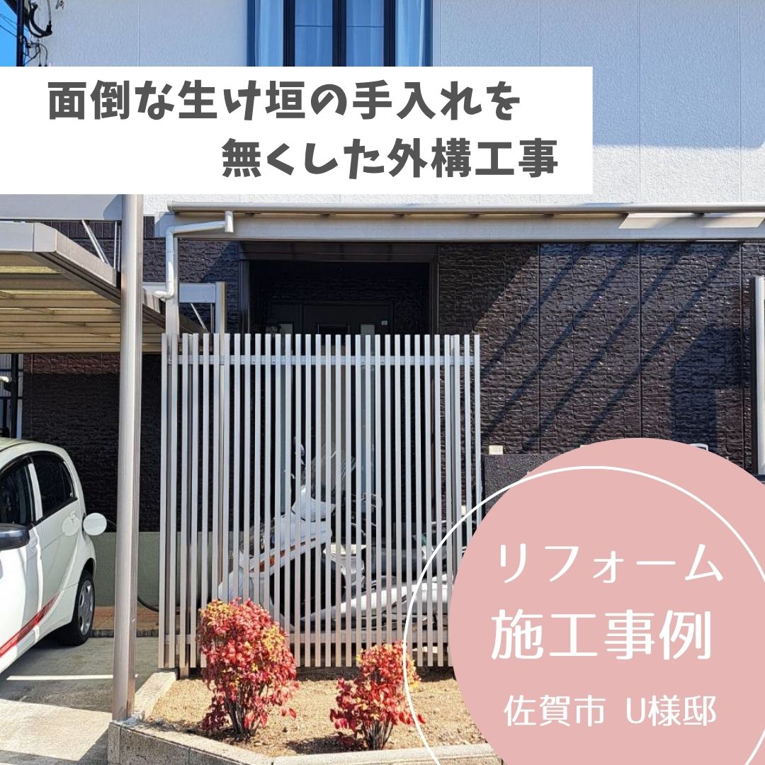 リフォーム2026/03/26リフォーム事例を追加しました 070 面倒な生け垣の手入れを無くした外構工事 佐賀市(LIXIL フェンスAB、コートラインⅡ) -